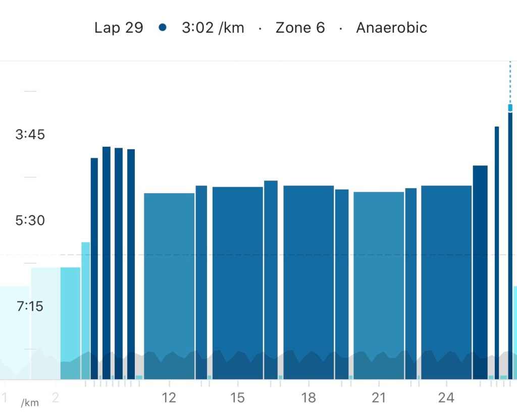 No matter how I felt the day after, yesterday was Thursday, so another training planned. Luckily, this was an easier one. Only 2x 1200-600m with 2 minutes rest. For the final 600, I had to pace the group and I always find it quite difficult. I’m not yet experienced enough to feel what pace I’m running, but I’m learning!